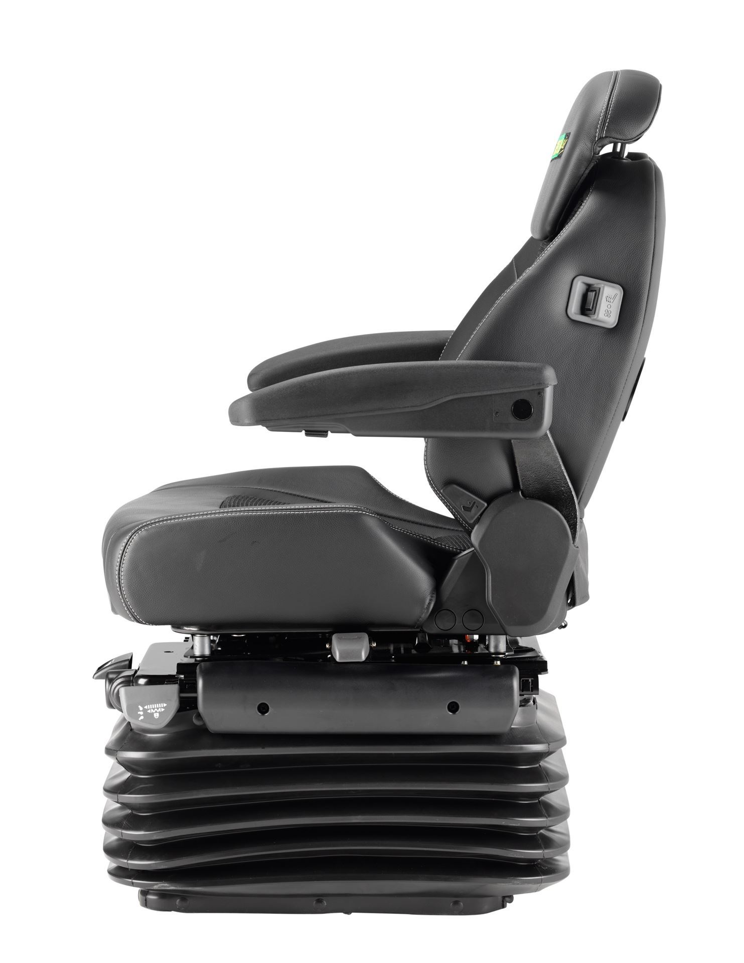 The KAB 85/K6 Invictus DRC is a low back semi-active air suspension seat with adjustable seat cushion adjustment from the 800 Series range, suitable for the agricultural and construction sectors. The Dynamic Ride Control (DRC) offers KAB’s ergonomic design with a new low frequency semi-active suspension, which self adjusts in response to vibrations in your work environment. This helps you to remain safe and maximises productivity all day long.